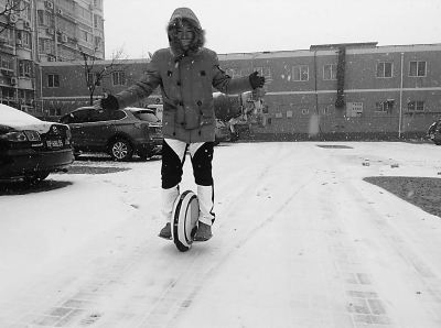 “它其实就是靠人体重心的平衡来控制,身体前倾就前进、后仰就刹车、左右侧倾就左右转弯,说起来也简单。现在的小孩子,上手快的,半天就学会了。”