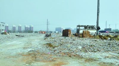 在村南边,一个“出租大院”还在拆除中,几堆一人多高的建筑垃圾散落在80多亩的土地上,而大院东侧不远处就是新宫村回迁安置房,远近对比有着浓重的不协调感。这个大院是物流园,最多的时候有流动人口6000多人,号称800多个商户……