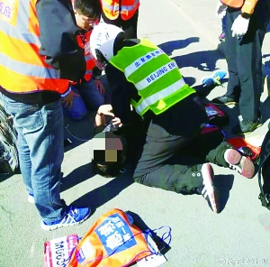 接诊的120急救医生韩大夫告诉记者,事发时她正在巡诊车上,接到了电台的呼叫,就急忙赶到现场。“当我赶到现场的时候,我们摩托车巡诊的医生已经到了,正在给患者做心肺复苏,我就赶紧过去帮忙。”