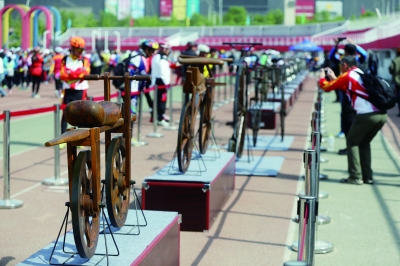 此次来京巡展的有16件展品,包括法国“木马轮”、德国“德莱斯”、英国“麦克米伦”等自行车发展史上的经典,以及“首都”、“飞鸽”、“永久”、“凤头”等国内外各年代著名品牌,参观者仿佛在自行车200多年的历史之河中“穿越”,直观地了解和品味自行车文化。