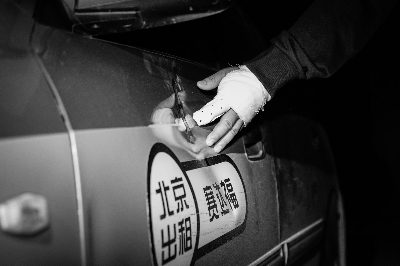 昨天凌晨,李师傅从市区送一位乘客前往回龙观。送完乘客后,困倦的他把车停在回龙观西大街辅路的一个车位上,放倒座椅酣然入睡。睡梦中,他突然听到几声巨响,迷迷糊糊睁开眼睛,发现车外站着两名20多岁的男子。