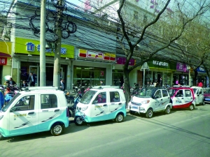 丰台区景泰东里李村公交站附近,发现有几辆代步车停占在自行车道上,影响自行车通行。