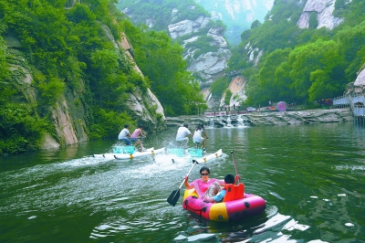除了在通天瀑前“发呆”外,黑龙潭也有不少适合亲子游玩的项目,比如在天然深潭中划划船。