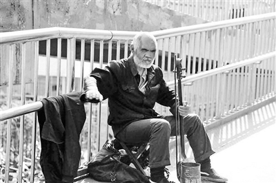老李在天桥上拉琴 摄影/陈振海