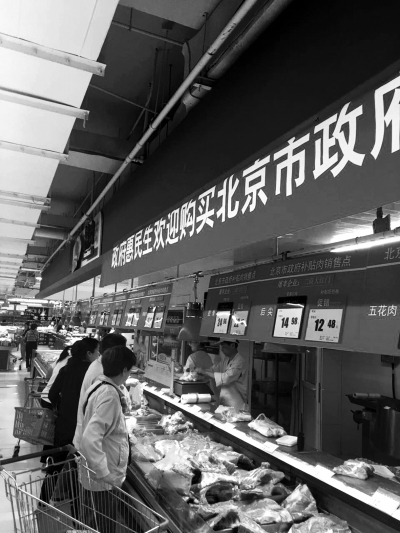 价格降下来,销量也随之增长。家乐福方庄店的负责人告诉记者,从前天市政府调控正式启动后,肉类销售区的顾客明显增多,尤其是生鲜区。今天到货1.5吨鲜肉产品,正常供应周边的顾客购买是没有问题的,价格和以前相比,8个鲜品每斤降价2.5元,两个冻品每斤降价4.5元,都已经做好相关的标识。家乐福共有9家门店参与冷冻肉投放,参与生鲜肉补贴的是20家门店,从昨天的销售情况来看,猪肉的销量比平时增长了三到五成。