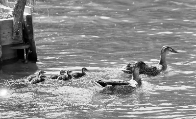 千龙—法晚联合报道 近日,什刹海野鸭岛今年第一批七只小野鸭破壳而出,出生仅仅半个小时,小野鸭就在鸭妈妈的带领下,下水畅游,为野鸭岛增添了新的生机。