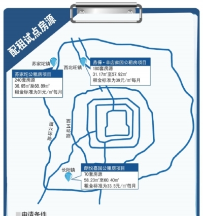 据市住建委介绍,本次配租试点的房源均为已实行面向本市符合条件的中低收入家庭公开摇号、先到先得和集体租赁后剩余的房源项目,共计490套,全部为市投资中心持有并运营的公租房项目。具体包括位于海淀区西北旺镇的燕保·辛店家园公租房项目180套、位于房山区长阳镇的朗悦嘉园公租房项目70套、位于海淀区苏家坨镇的苏家坨公租房项目240套。