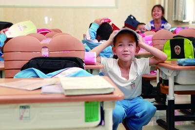 昨天下午,地坛小学全体师生开展防震安全演练 约图/记者 赵颖彦