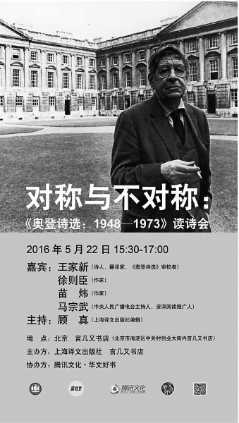 上海译文出版社特邀《奥登诗选:1948—1973》的审校者诗人王家新、中央人民广播电台主持人马宗武,与读者一同诵读奥登诗作,在随性自由的氛围中亲近一代诗坛巨匠的思想与才情。