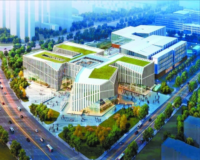 海淀北部文化中心由档案馆、文化馆、图书馆和温泉中心四部分组成。图为全景效果图。