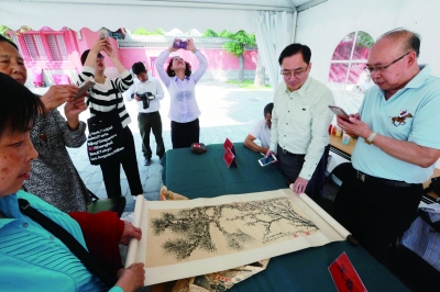 专家看到李苦禅真迹不禁拿出手机拍照留念 摄/记者 付丁