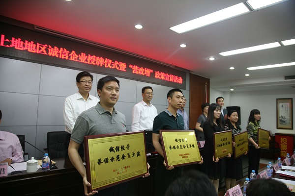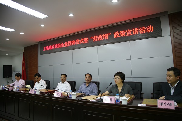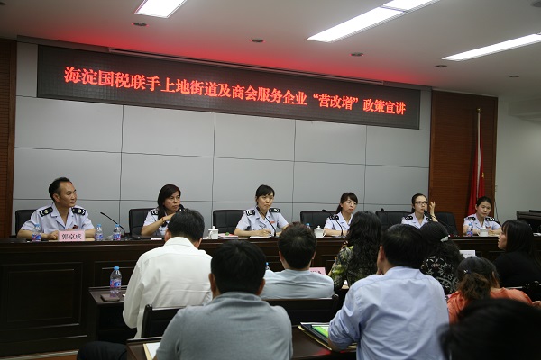 为表彰地区诚信企业、进一步加强企业服务工作,5月17日下午,上地街道联合区国税部门及商会召开地区诚信企业授牌仪式暨“营改增”政策宣讲会。区统战部副部长、区工商联总书记卢克玉,上地街道党工委书记王京立、办事处主任冀国瑞,区工商联党组副书记、副主任郭莹,全国工商联执委、海淀区工商联副主席、上地商会会长顾小锋,区国税局、第九税务所相关领导以及地区部分企业参加,上地街道办事处副主任王立君主持。