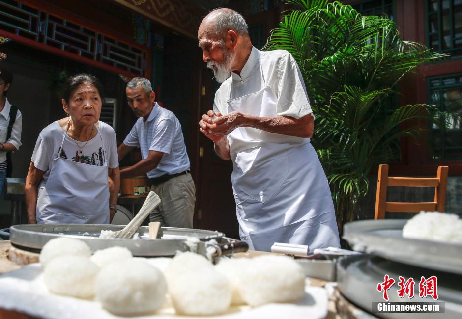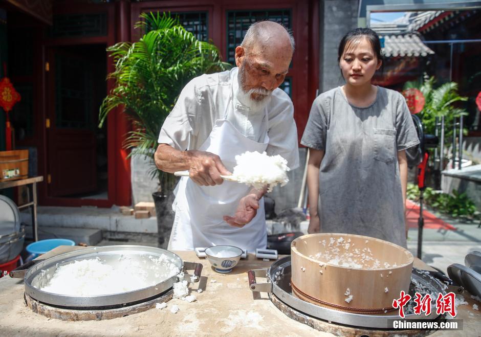 5月26日,被誉为“煮饭仙人”的日本85岁老人村嶋孟在北京一个四合院里展示技艺。他将在北京常住三年,去东北等地寻找中国最好大米。4月26日,他关掉了在日本大阪经营了半世纪的“银饭屋下户亭”。中新社记者 张浩 摄