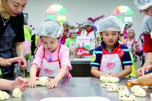 日前,北京翠微大厦股份有限公司组织30名少年儿童及家长,来到北京义利食品厂,在工人师傅的指导下,小朋友们用小手捏出自己喜欢的面包造型。一小时后,香气四溢的面包端上来,孩子们见到自己的劳动成果无比兴奋。