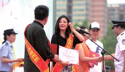 昨天,赵薇和郁钧剑、刘媛媛、沙溢4位明星正式担任中国反拐义务宣传员。在活动现场,4位明星与志愿者、民警一起分发反拐宣传品,并向在场群众进行反拐宣传。