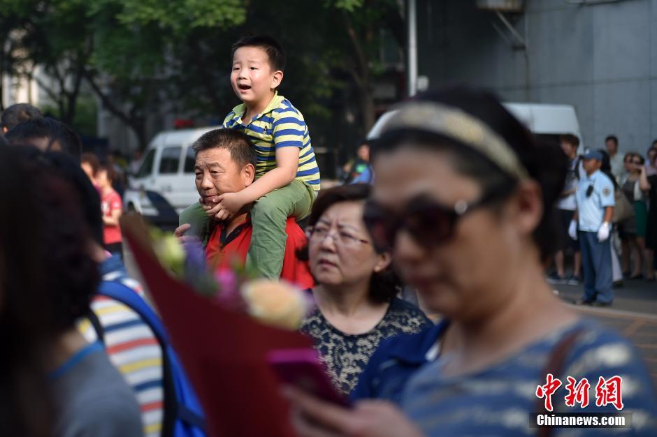 2016年6月8日,为期两天的2016年全国高考进入尾声,下午5时,全国940万考生陆续走出考场。图为等待考生的家长和小朋友。 中新网记者 金硕 摄