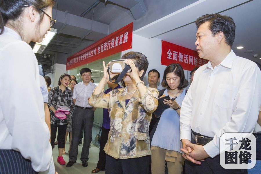 在图像发展中心,千龙网员工手中的VR眼镜引起吉林的兴趣。他说:“我戴过,身临其境的现场感非常好。委员们可以体验一下。”市政协副主席赵文芝和田歌等政协委员纷纷戴上VR体验。