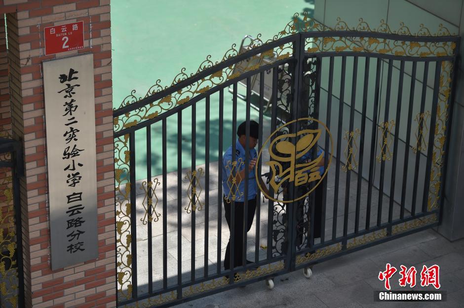 此前该校多名孩子出现流鼻血、咳嗽、红疹等症状。6月12日,北京西城区政府及区教委召开通报会,向家长及社会通报北京第二实验小学白云路分校空气及操场检测结果。在空气抽检样本中,一间教室甲醛超标一倍,其余指标合格;操场样块检测均符合国家标准。西城区教委表示,将在一周内对操场异味进行处理,包括拆除和部分拆除操场等措施。中新网记者 金硕 摄