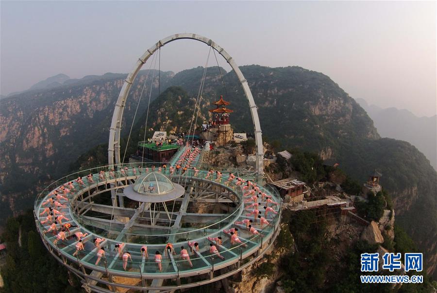 来源标题:百名瑜伽爱好者悬空玻璃观景台秀瑜伽