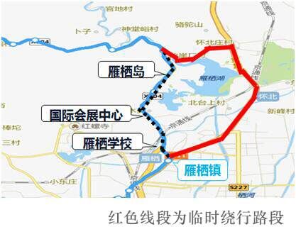 为保证活动顺利进行,雁栖湖国际会展中心周边区域路段将实行临时交通管控措施,影响H25(于家园-西栅子)、H49(于家园-莲花池)、H13(于家园-琉璃庙)、H39(于家园-神堂峪)和H12(于家园-梁根)共计5条线路。管控时间为2016年6月24日15:00-24:00。