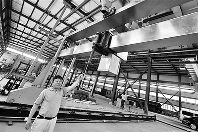 在别墅旁边的厂房里,吴建平向北青报记者展示了自己的“打印机”。这台“打印机”长20米,宽和高都是6米,6米的架子上还带着一个可以移动的大型喷头。设备分为四个系统,第一个系统是电子配料系统,第二个系统是搅拌系统,第三个系统是输送系统,把搅拌的材料输送到打印机,最后一个是打印系统,根据电脑设计图纸和方案,由电脑操控喷头喷出“油墨”,像奶油裱花一样层层叠加,按墙体的走向喷射“打印”。吴建平告诉北青报记者,无论是小型的3D打印机还是这样的“超级打印机”,打印的原理都是将材料一层一层堆叠,所以不管是3D打印出来的杯子还是房子,外表上看都有一圈一圈的螺纹,这就是堆叠打印的结果。未来他们还会在“打印机”上加装其他设备,可以抹平这些凸起的螺纹,让房子更加美观。