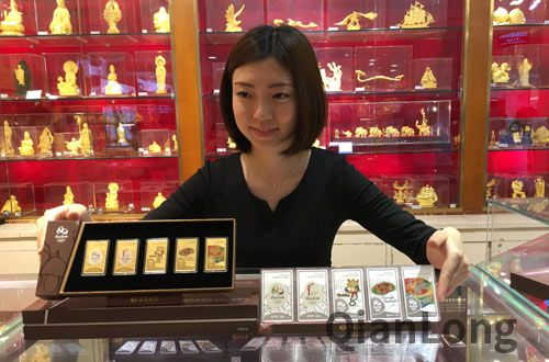7月6日,距里约奥运会开幕还有30天,由中国奧委会和国际奥委会授权的《里约2016年奥运会纪念金/银套组》在北京菜百公司发行上市。摄影 千龙网记者 王立立