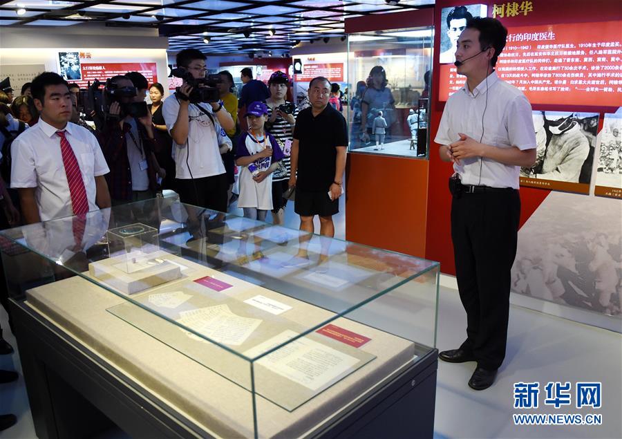7月7日,观众在参观展览。为纪念中国共产党成立95周年、全民族抗战爆发79周年,中国人民抗日战争纪念馆于2016年7月推出“民族先锋中流砥柱——中国共产党抗战英烈事迹展”。展览通过160幅图片、99件(组)文物,充分展示中国共产党人为抗战胜利所做出的巨大牺牲和中国共产党在抗日战争中的中流砥柱作用。新华社记者张晨霖摄