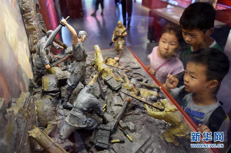 7月7日,几名小朋友在参观展览。为纪念中国共产党成立95周年、全民族抗战爆发79周年,中国人民抗日战争纪念馆于2016年7月推出“民族先锋中流砥柱——中国共产党抗战英烈事迹展”。展览通过160幅图片、99件(组)文物,充分展示中国共产党人为抗战胜利所做出的巨大牺牲和中国共产党在抗日战争中的中流砥柱作用。新华社记者张晨霖摄