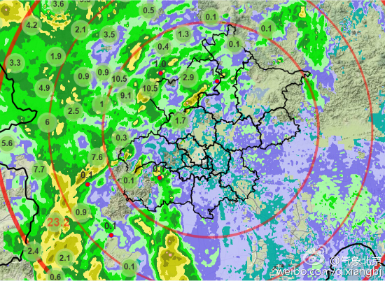 降雨云带自西北向东南逐渐影响本市,目前延庆、怀柔、昌平及门头沟部分地区已出现分散性降雨。