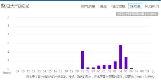 市气象台发布14日12时至15日6时降水量(毫米):全市雨量监测站平均8.4,城区平均6.5,西北和东北10.3,西南7.5,东南4.4,最大顺义北务55.6,最大雨强顺义北务19-20时,29.2毫米/小时。城区朝阳和石景山平均8,海淀6.9,东城6.1,丰台3.8,西城3.6。