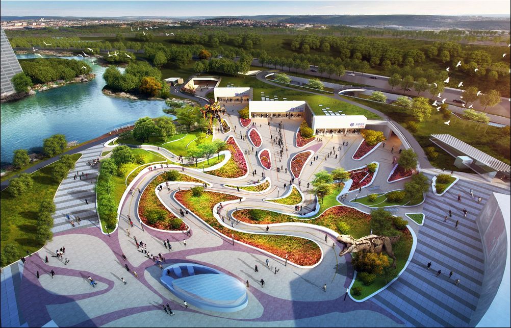 方案二的整个车站就是一座开满鲜花的山丘,站厅为大面积天窗,开放式中庭,乘客在地铁车站可沐浴自然阳光。按照规划,这里要打造北京第一个无通道出入口地铁站,360度均可进出车站。