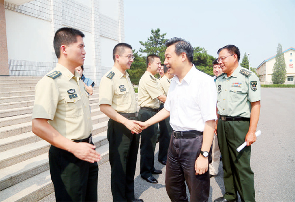 7月29日,区委常委、武装部政委韩义来到武警北京指挥学院和国防大学防务学院进行走访慰问。