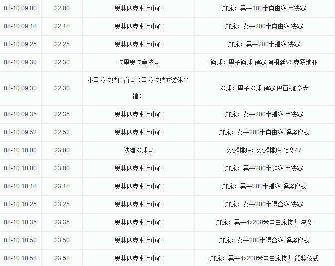【资讯】2016里约奥运会赛程表(8月9日)精彩抢先知(10)