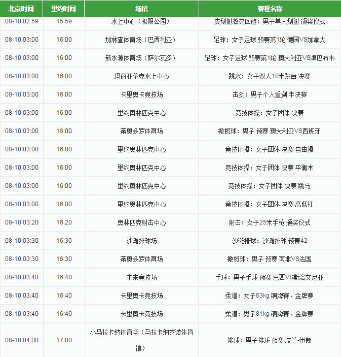 【资讯】2016里约奥运会赛程表(8月9日)精彩抢先知(8)