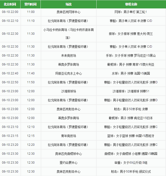 【资讯】2016里约奥运会赛程表(8月10日)精彩抢先知(5)