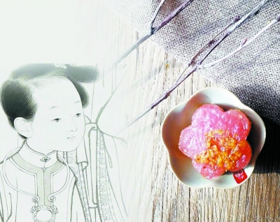 巧姐:藕粉、黏米粉、糯米粉、糖金桂。形似桂花,粉嫩半透,玲珑可人。