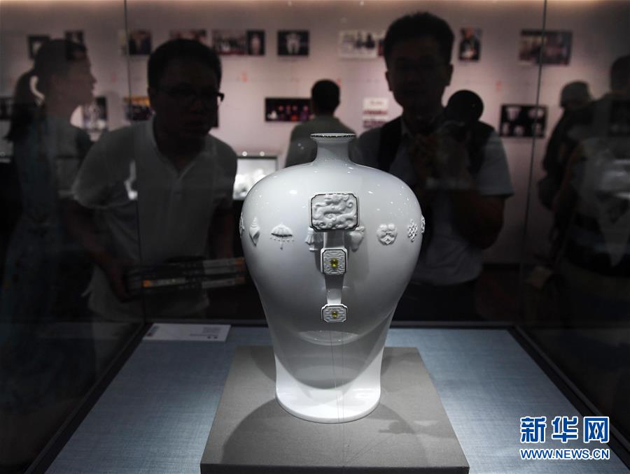 “明白本色·大器晚成——王侠军瓷器创作展”8月10日至19日在北京恭王府乐道堂展出,近百件台湾艺术家王侠军创作的瓷器精品参展。新华社记者 陈晔华 摄