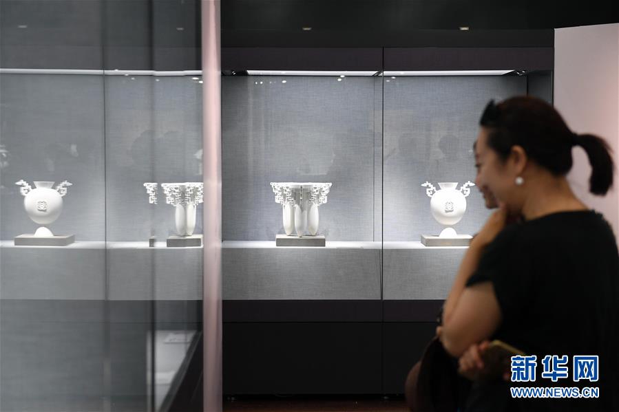 “明白本色·大器晚成——王侠军瓷器创作展”8月10日至19日在北京恭王府乐道堂展出,近百件台湾艺术家王侠军创作的瓷器精品参展。新华社记者 陈晔华 摄