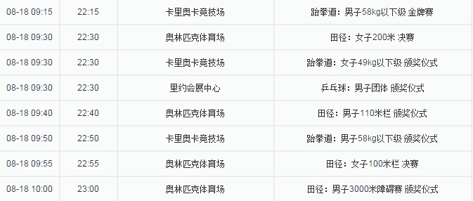 千龙网综合 里约时间2016年8月18日,里约奥运会在羽毛球、皮划艇、马术、沙滩排球、跆拳道、摔跤、田径、拳击、帆船、曲棍球、铁人三项、跳水项目共产生23枚金牌。