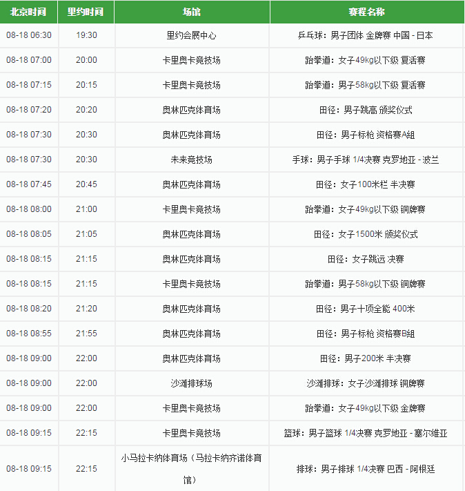 08-18 03:00 男子足球半决赛:尼日利亚VS德国