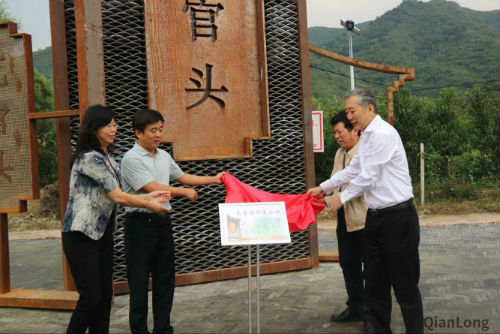 瓦官头村标识(名称:乡愁)以传统建筑形象为模版,体现家的概念。图为标识揭牌现场。 摄影:巢晶