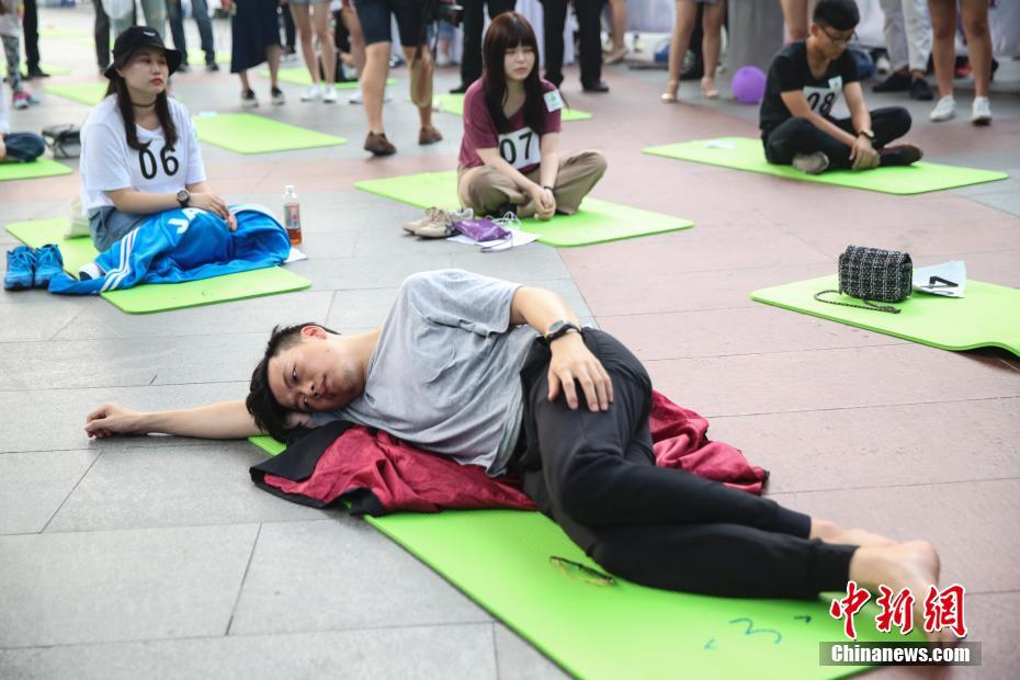 9月24日,选手们在发呆比赛中。当日,由中国新闻周刊·有意思网主办的有意思发呆大赛在北京世贸天阶举行。中新社记者 熊然 摄