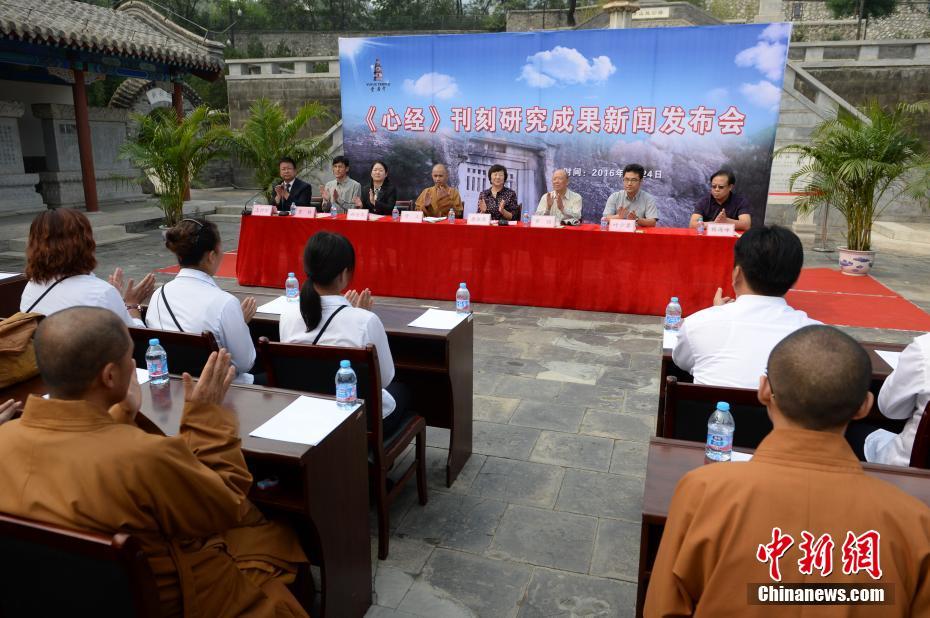 9月24日,房山石经《心经》刊刻研究成果发布会在北京云居寺举行。中国社科院世界宗教研究所研究员罗炤在会上介绍称,经研究发现,云居寺石经山保存在第八洞的石经《般若波罗蜜多心经》(简称《心经》)为唐高宗显庆六年(公元661年)镌刻,是现存最早的版本。其同时表示,石经中镌刻的题署“玄奘奉诏译”,也为国际学术界争论多年的“玄奘是否翻译了汉文本《心经》”这一问题给出了新的参考依据。中新社记者 崔楠 摄