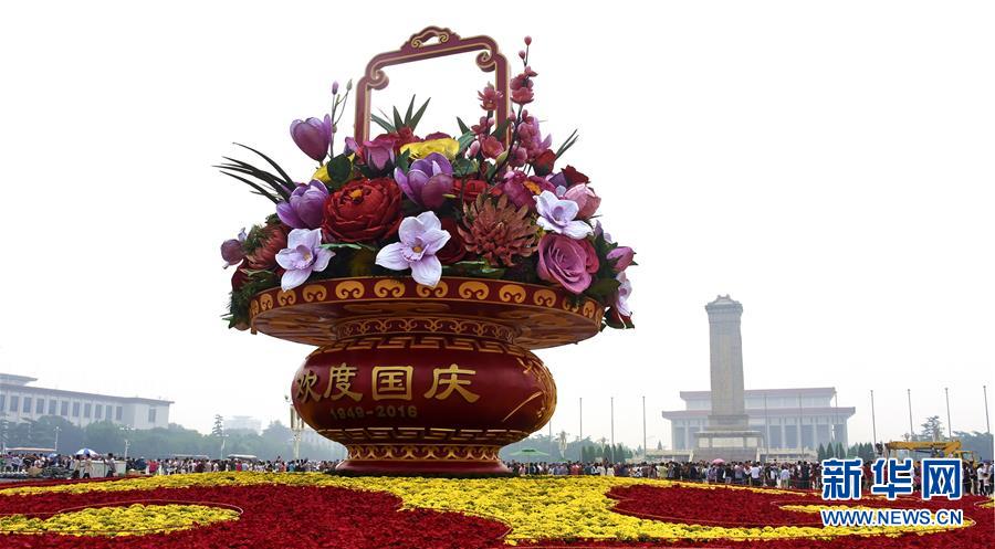 截至当日,天安门广场及长安街沿线国庆花卉布置全部完工。其中,天安门广场主题为“祝福祖国”,高17米、直径50米的中心花坛也在当日摆放布置完毕。