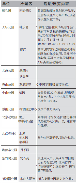 国庆节期间,市属多家公园均在公园内的“冷景区”推出展览、演出等活动,以吸引本市游客,分散热门景区的游人压力。