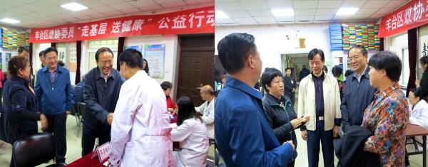 10月18日上午,丰台区政协医药卫生界别委员来到方庄街道芳群园第三社区,开展“走基层、送健康”义诊咨询活动。区政协副主席邢方岭、李秀瑛,区政协秘书长赵冬辰参加活动。