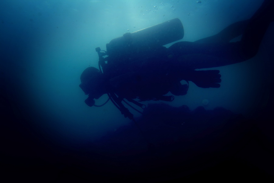 像一团黑头发蒙在队员面镜上这种瘆人的经历,队里几乎每个人都有。通讯员 张岩 摄