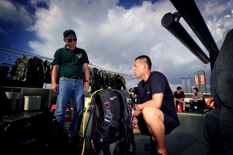 准备下水训练的潜水特警。通讯员 张岩 摄