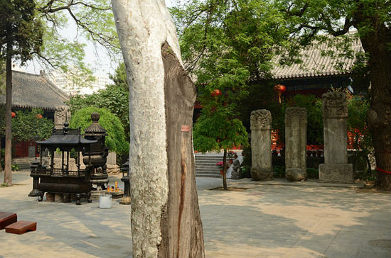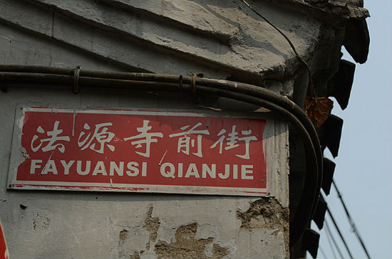 沿西砖胡同步行125米,右转,进入法源寺前街,最后,在一个老北京人携带下,我找到了法源寺。