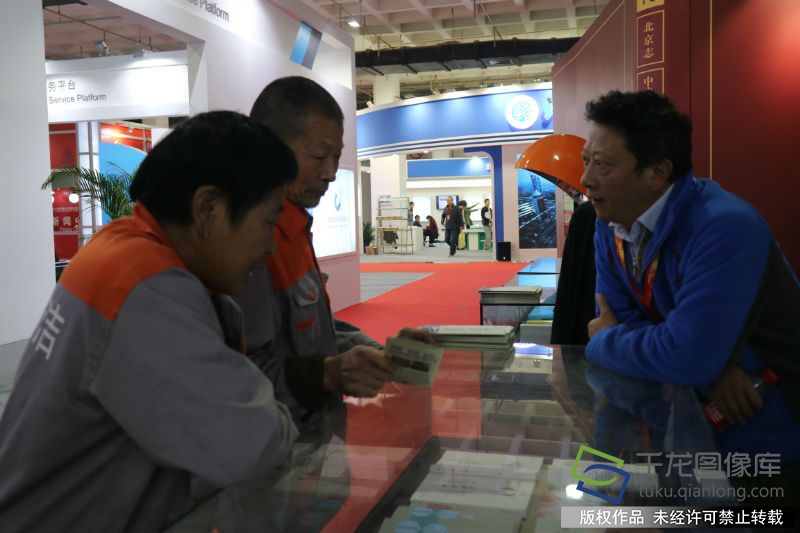 10月27日上午,文博会老国展会场“志说北京”展区。图为北京市地方志办公室和北京地情爱好者交流。千龙网记者 巢晶摄